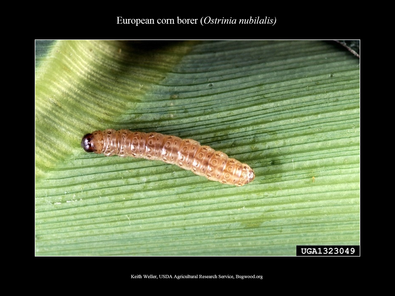 European corn borer (Ostrinia nubilalis) (ECB) has three or more yearly generations in North Carolina. Before the widespread planting of Bt corn, it was one of the most serious pests in the state. It is now rarely encountered and only in non-Bt refuge corn. If corn is planted in a timely fashion, the first and second generation will infest the crop. Late corn may be infested by the second and third generations. Late maturing corn is usually most seriously infested.