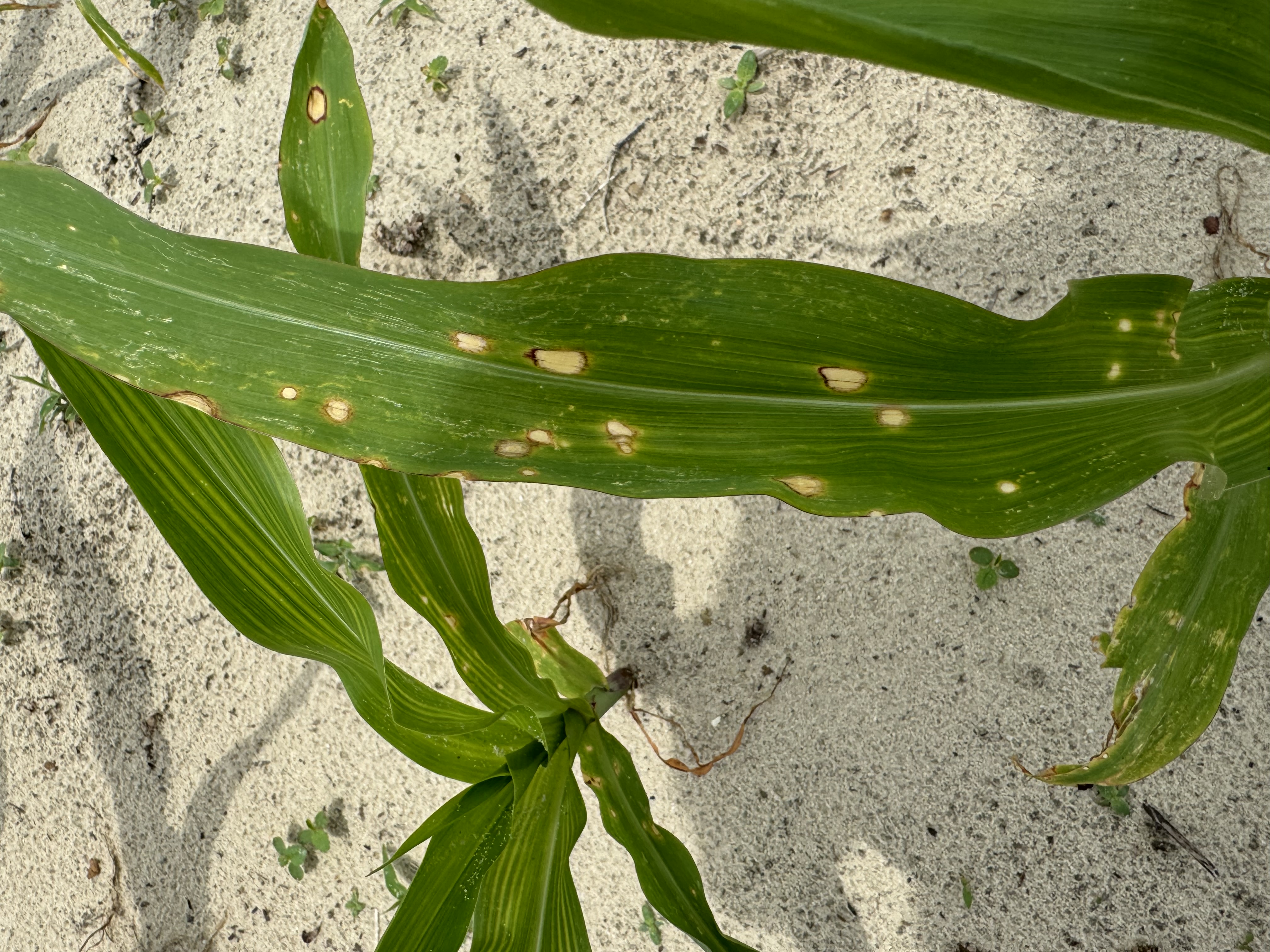 With such a wet May, y’all are probably seeing an uptick in leaf spots on corn, but there’s no need for concern. It’s likely holcus leaf spot, a minor bacterial disease that typically shows up early in the season under warm, wet conditions.